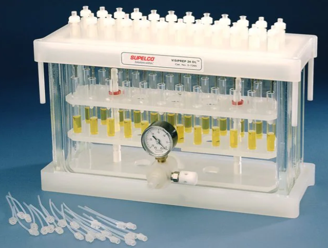 Visiprep DL(一次性連接管)真空固相萃取裝置消除了在同一端口處理新樣品時發生交叉污染的風險。該一次性連接管一端是聚丙烯內螺紋luer 接口可以直接連到 SPE 小柱上,另一端 PTFE 細管可以通過 SPE 裝置的端口。這可確保與樣品接觸的所有固相萃取端口和控制閥的表面可在每次萃取后得到更換。