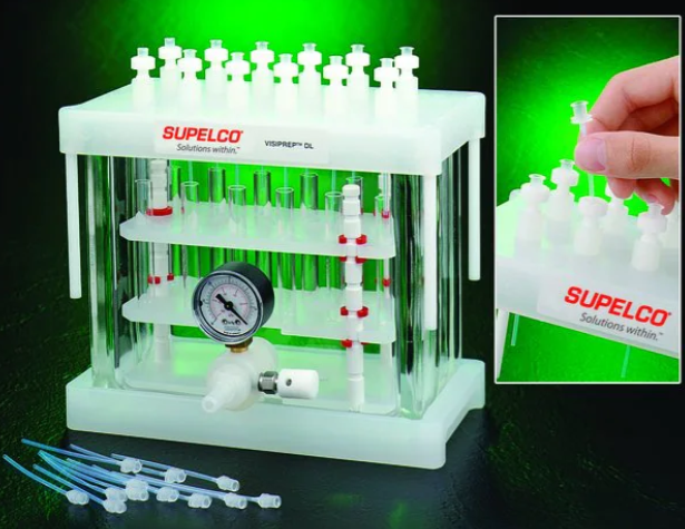 Visiprep DL(一次性連接管)真空固相萃取裝置消除了在同一端口處理新樣品時發生交叉污染的風險。該一次性連接管一端是聚丙烯內螺紋luer 接口可以直接連到 SPE 小柱上,另一端 PTFE 細管可以通過 SPE 裝置的端口。這可確保與樣品接觸的所有固相萃取端口和控制閥的表面可在每次萃取后得到更換。